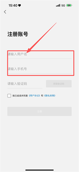 2、隨后我們可以在注冊賬號頁面,輸入用戶名和手機(jī)號。