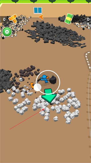 1、跟隨箭頭指引前往垃圾堆積處,操控角色使用工具收集垃圾。