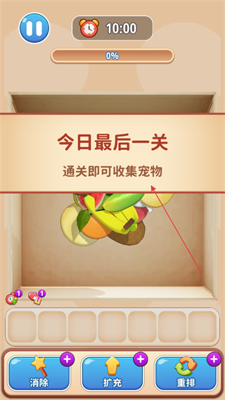 4、持續(xù)收集消除物品,待關(guān)卡內(nèi)所有堆疊物品清理完畢,收獲勝利。