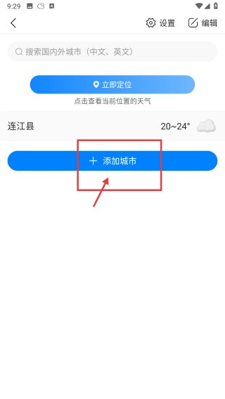 2、在城市管理頁面,點(diǎn)擊添加城市按鈕,進(jìn)入添加城市界面。